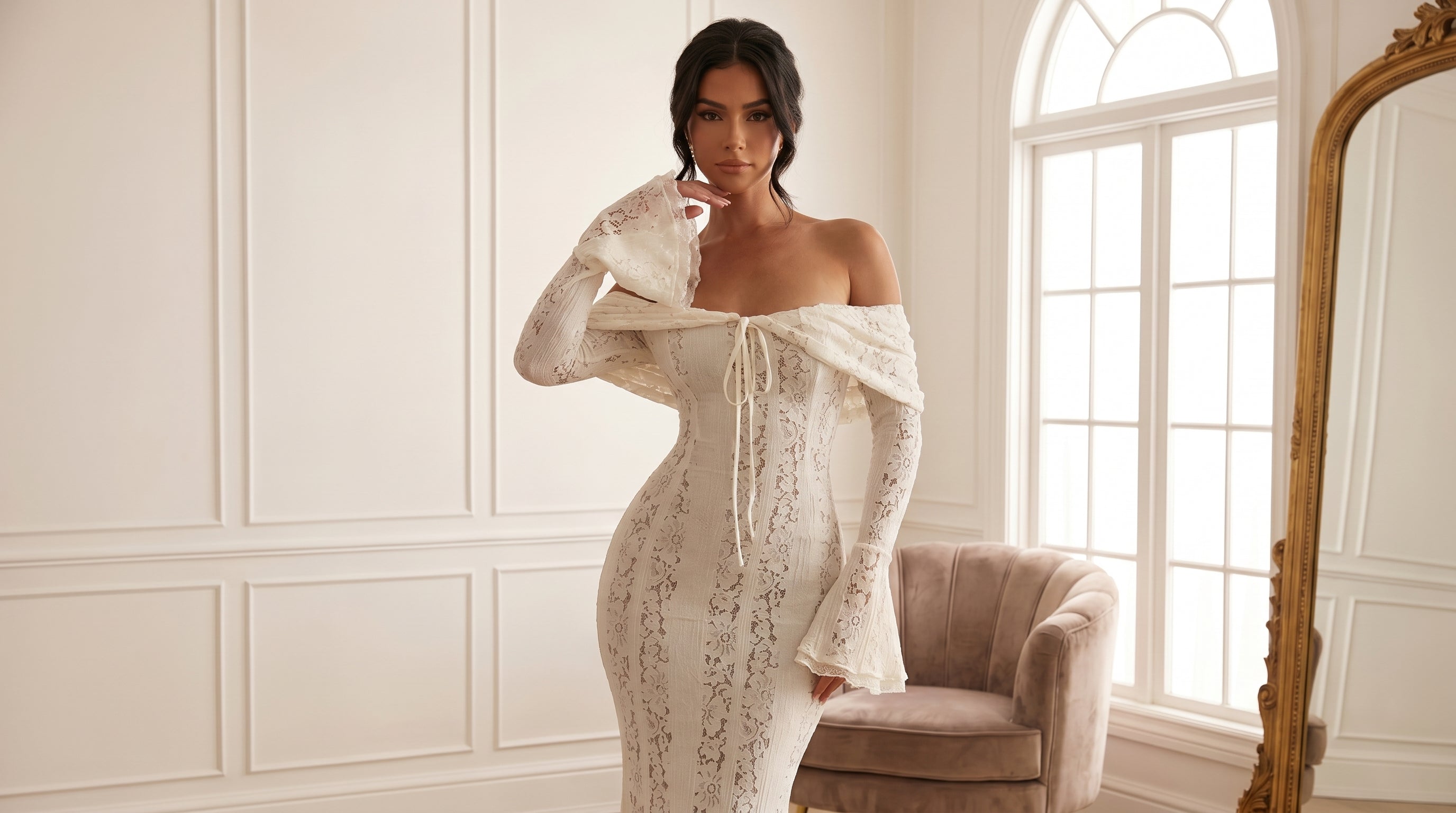 YaraLuxe White Turtleneck Long-Sleeve Pleated Midi Dress